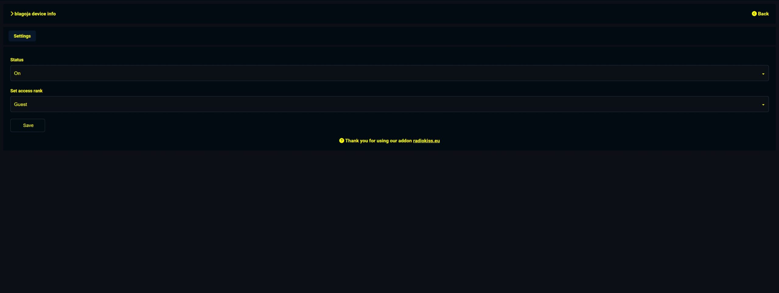 Vidljivost informacija o uređaju mogu imati samo rankovi koje odabere admin, a sve je podesivo u admin panelu.