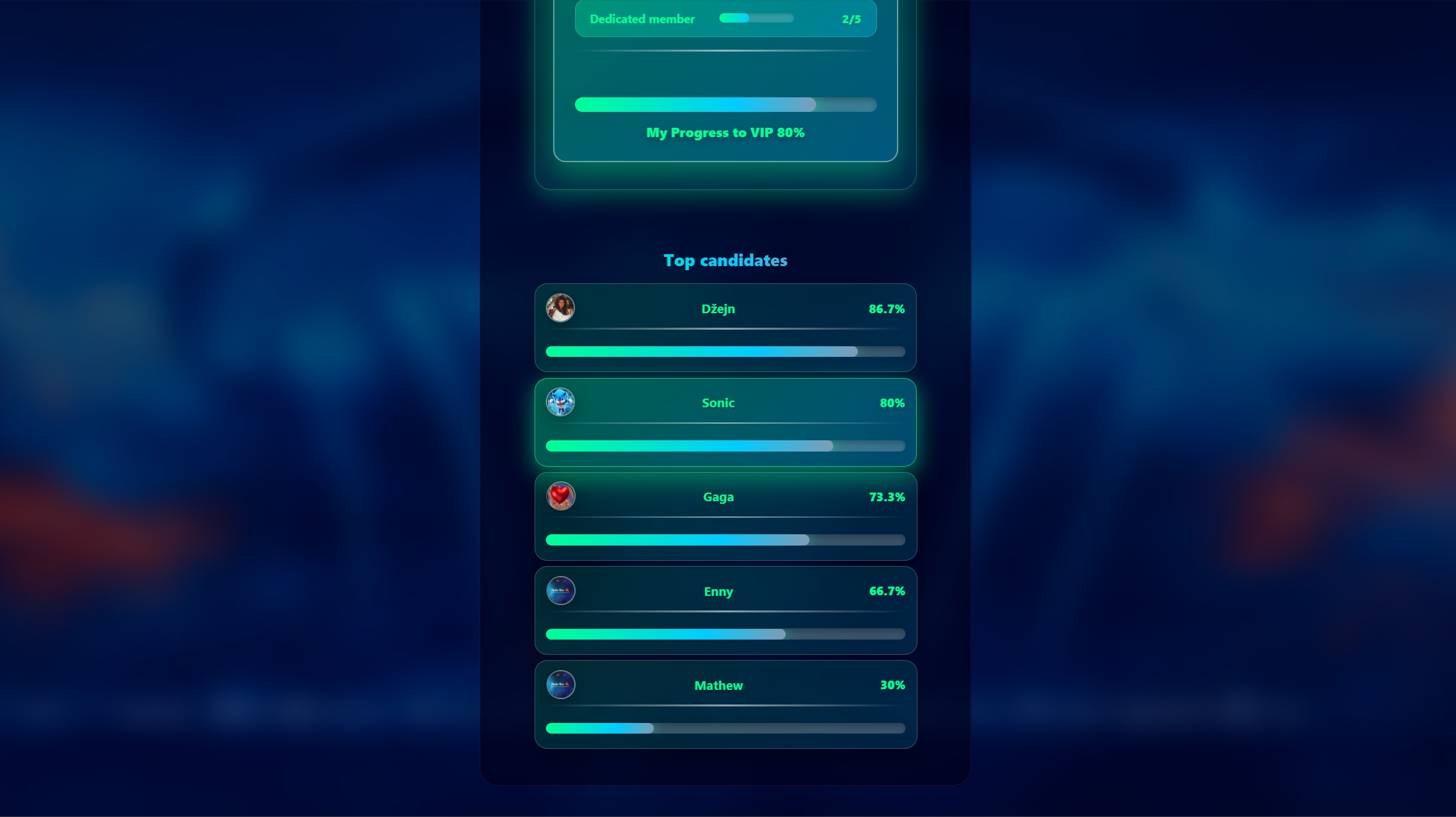 Kako bi se potaknulo natjecanje, dodatak prikazuje i ljestvicu s top 5 korisnika koji su trenutno najbliže osvajanju ranka.